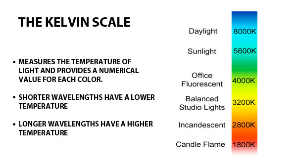over time. Our staff can help you choose a good color temperature (high CRI) for even coverage and long-lasting output. Per the Kelvin chart, a good temperature is in the 2,700 to 3,200 degree range for a warmer color.