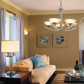 Chandeliers add style and a decorative focal point to almost any room in the house. Recent lighting design trends have focused on the value of chandeliers in many spaces throughout the house. They have traditionally been used in the dining room, but are now commonly used in living rooms and dens. The addition of a dimmer lets you alter the intensity of the light to suit the mood or activity.